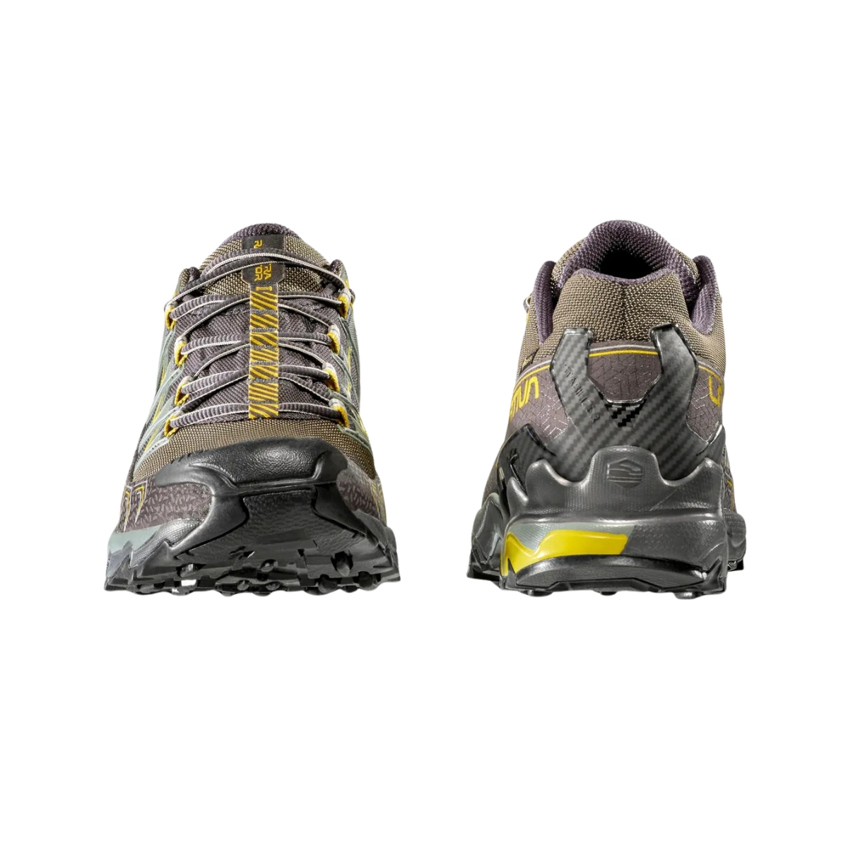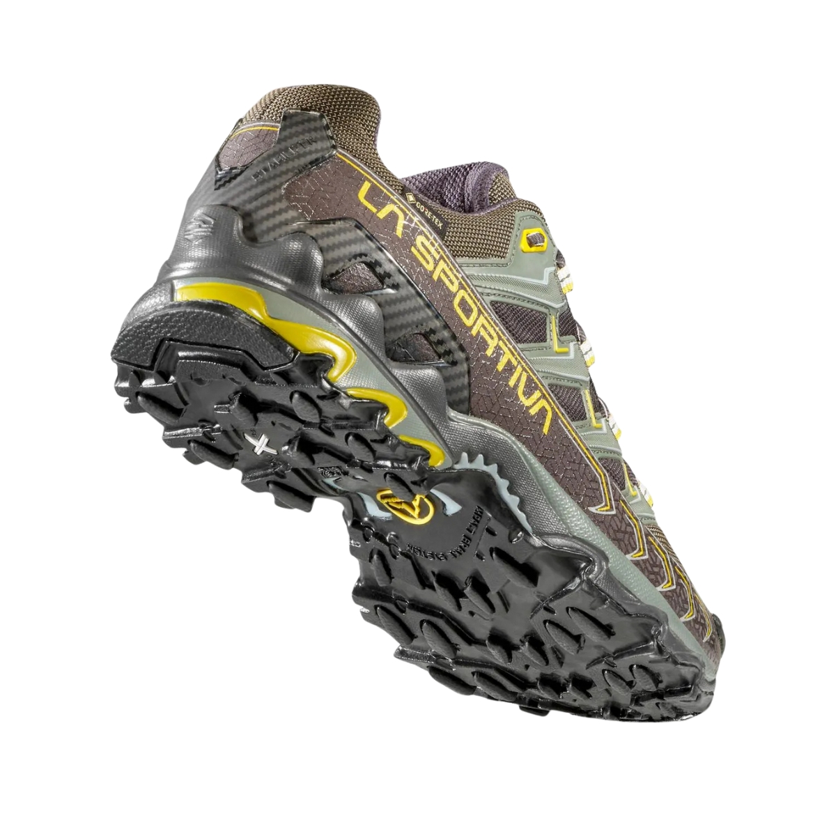 Calzatura in membrana Gore-Tex sviluppata per utilizzi invernali su percorsi off-road di lunga distanza, competizioni ultra-marathon e sessioni di allenamento prolungate. La tomaia è in mesh anti abrasione traspirante e water repellent, la fodera è in membrana Gore-Tex Extended Comfort a garanzia di impermeabilità e traspirabilità. Il sistema di allacciatura è integrato alla tomaia a mezzo di fettucce cucite sul tessuto elastico interno e con rinforzi in alta frequenza sul mesh esterno: questo permette di ripartire la tensione dell’allacciatura su tutta la tomaia ed avvolgere meglio il piede per un perfetto comfort di calzata. Ultra Raptor GTX unisce i vantaggi in termini di performance di una costruzione contenitiva a quelli di comfort derivati da una forma comoda e con pianta larga. Il risultato è un prodotto indossabile per molte ore consecutive ed adatto per utilizzo endurance su qualsiasi tipo di terreno off-road nei mesi invernali o in situazioni di elevata umidità, grazie alle doti di impermeabilità della fodera Gore-Tex. Suola ad alta aderenza realizzata in mescola La Sportiva FriXion XF.