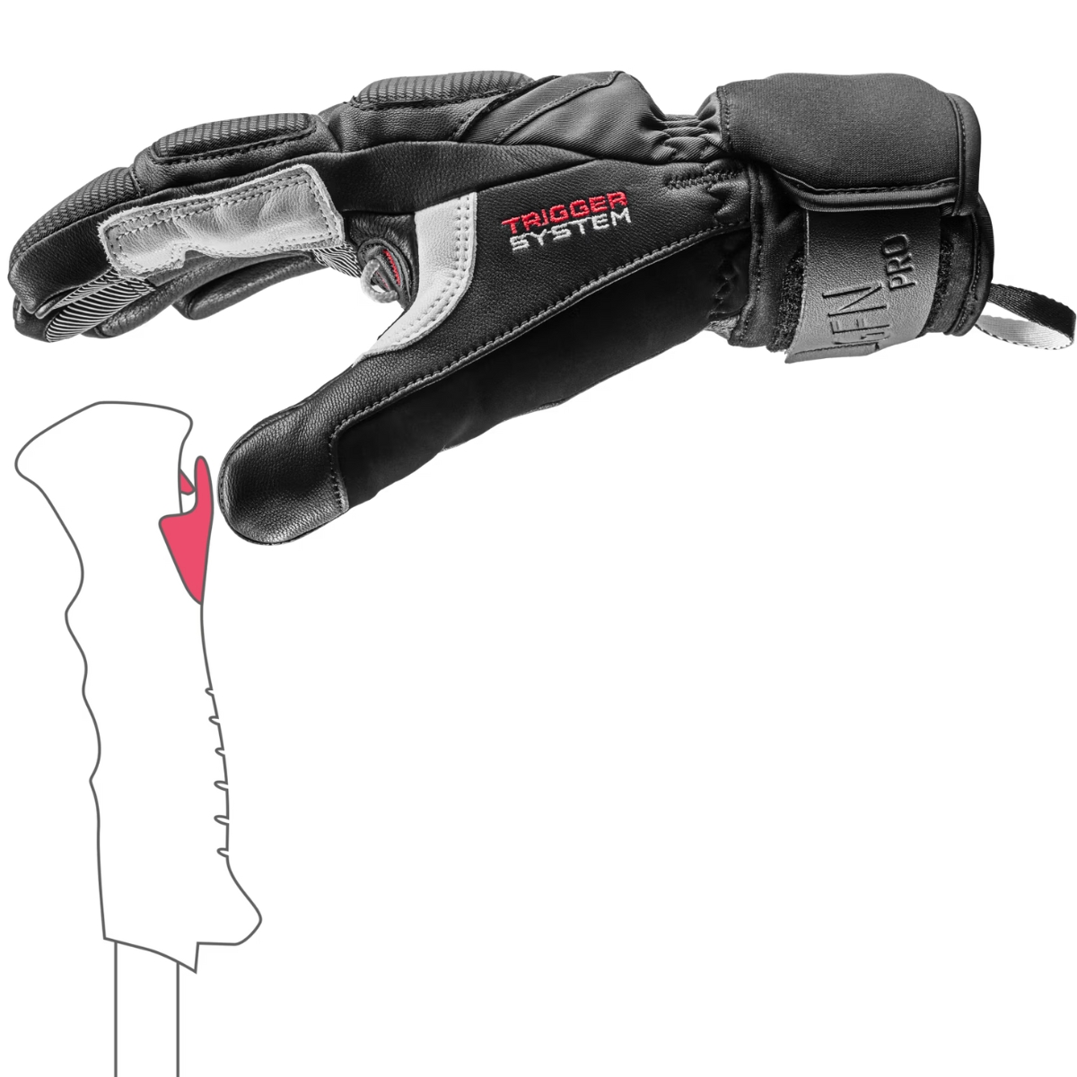 Il Griffin Pro 3D è perfetto per gli sciatori ambiziosi alla ricerca di un guanto robusto e protettivo, poiché riprende alcuni elementi dai guanti da gara. Il dorso del guanto è realizzato in pelle di capra di prima qualità, softshell e neoprene, il palmo è anch’esso in pelle di capra al 100% con un ulteriore inserto in silicone nash, che garantisce una vestibilità confortevole e allo stesso tempo un’elevata aderenza al bastoncino. L’isolamento Primaloft® insieme alla fodera Micro Bemberg offre una protezione ottimale contro il freddo. Il sistema Trigger 3D consente di agganciarsi in pochi secondi al bastoncino, garantendo un collegamento diretto tra il guanto e il bastoncino e la perfetta trasmissione della forza. Grazie all’mf touch, è possibile utilizzare lo smartphone e gli altri dispositivi anche quando si indossano i guanti.