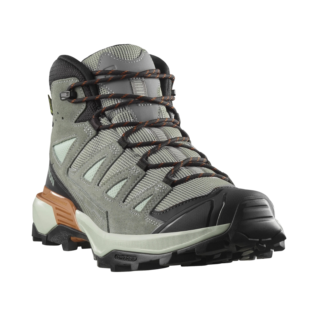 - All Terrain contaGRIP®: La nostra suola All Terrain contaGRIP® è adatta a una grandissima varietà di superfici. Garantisce resistenza e sicurezza su superfici bagnate, asciutte, dure o cedevoli.